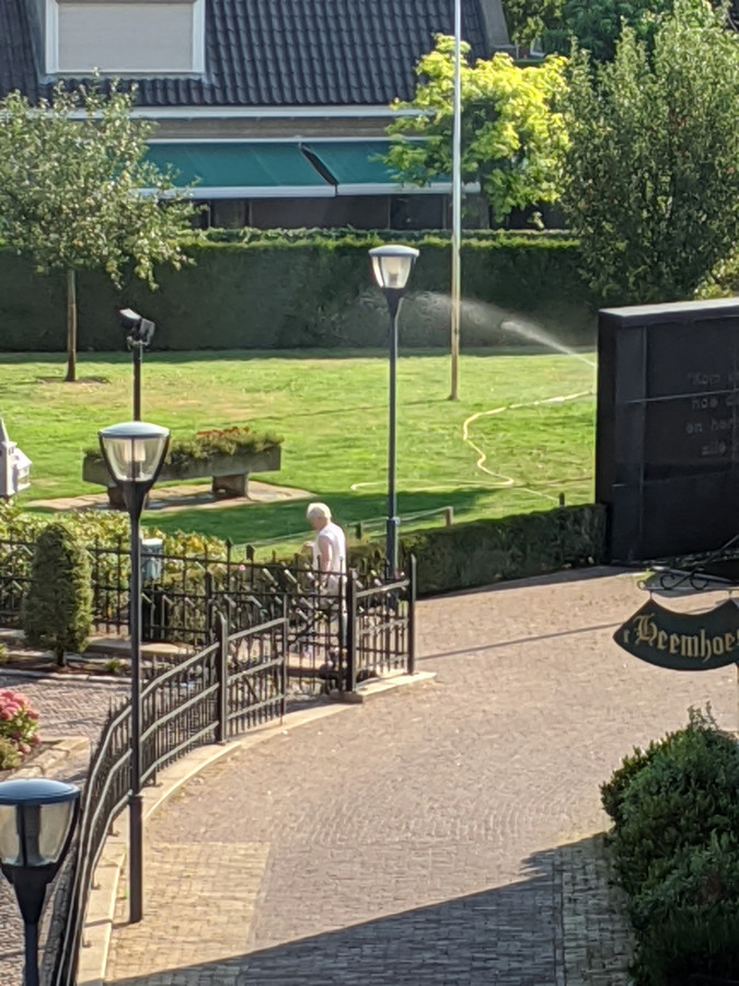 Er Wordt Volop Gesproeid In De Tuin Van De Nicolaaskerk In Denekamp Maar Wel Met Grondwater Foto Tubantia Nl